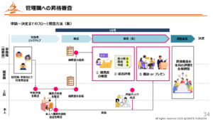 上記資料は当社で提案している昇格審査のサンプルです。特に、管理職に上がるときは大きな変化になりますので、できる範囲で構いませんが必ず審査を実施した方がよいと言うのが私の意見です。